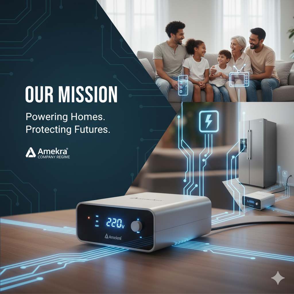 At Amekra, our mission is to provide reliable, energy-efficient voltage stabilizers that protect appliances and ensure uninterrupted power for every home. We strive to combine advanced technology with user-friendly design, delivering solutions that save energy, enhance safety, and make daily life hassle-free for our customers across India.