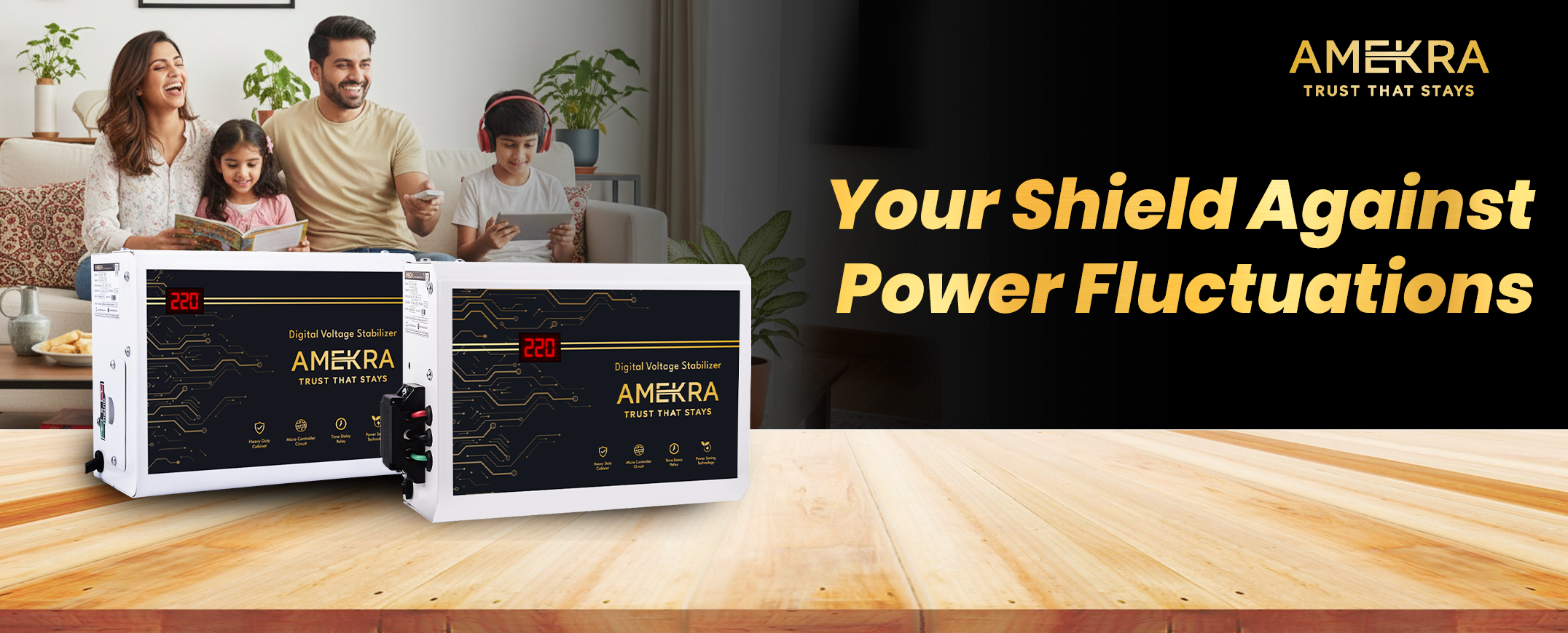 Amekra - Wall Mount Stabilizer for AC Upto 0.8, 1.0, 1.5 Ton - 4KVA - 150V Digital - Aluminium